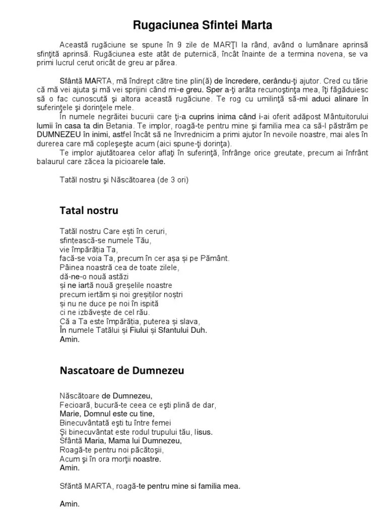 23.08.2017 · rostește această succesiune de rugăciuni de 10 ori pe zi, timp de 9 marți, în fața unei icoane a sfintei fecioare, având și o lumânare sfințită aprinsă. Dorinta se implineste la sfarsitul perioadei. Cred cu tarie ca ma vei asculta in necazul meu si ma vei sprijini cand imi este greu. Iti fagaduiesc sa fac cunoscuta si altora aceasta rugaciune.. Pentru mulți credincioși, ziua de marți nu reprezintă o zi deosebită… însă trebuie să știți că există un program de rugăciune, care se ține 3 marți la rând și ce presupune rostirea unor rugăciuni către sfântul anton de padova.
